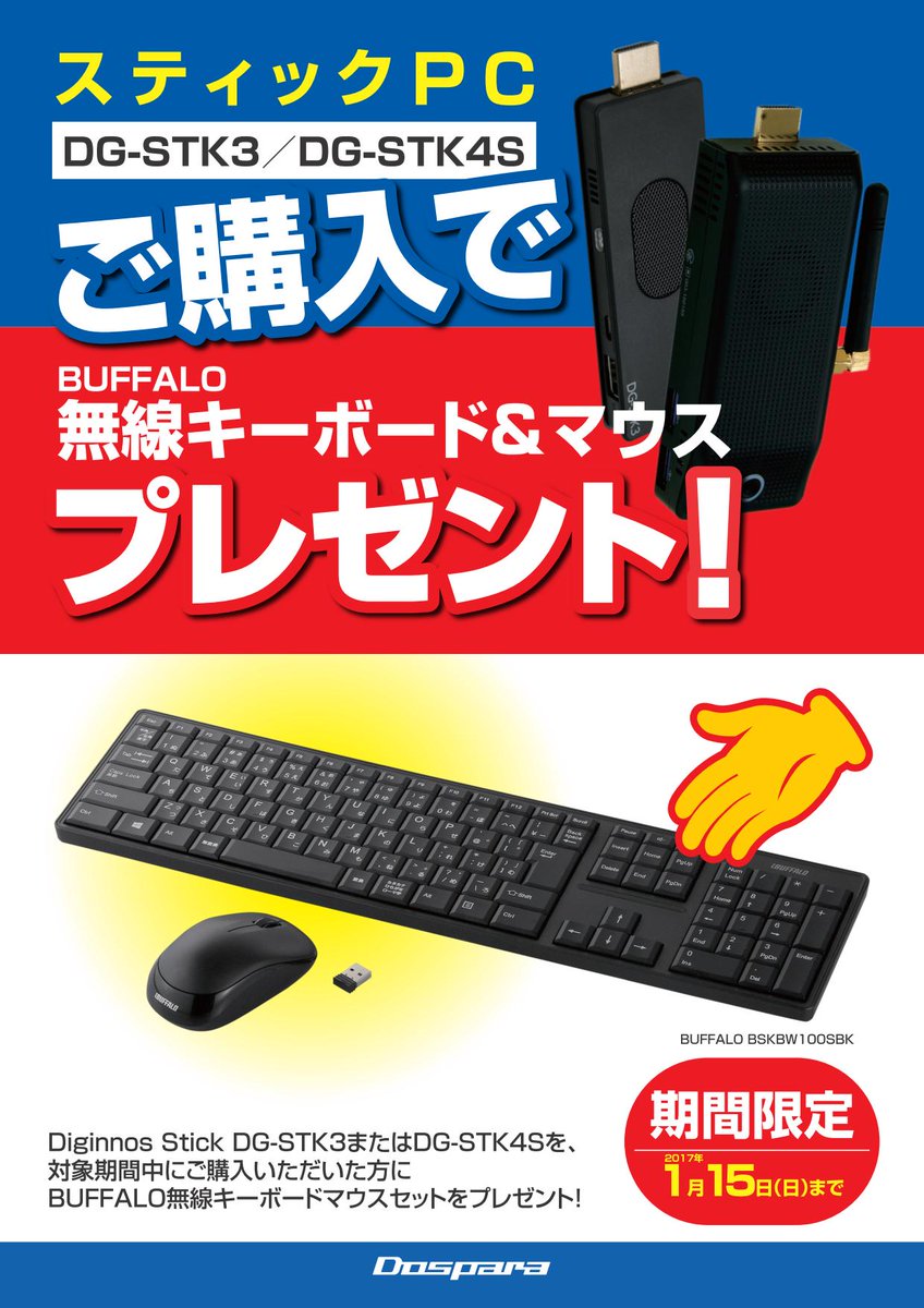 ドスパラ大宮店 A Twitter スティックpc Dg Stk3 在庫あります お値段9 241円 税 今なら無線キーボード マウスもお付けします